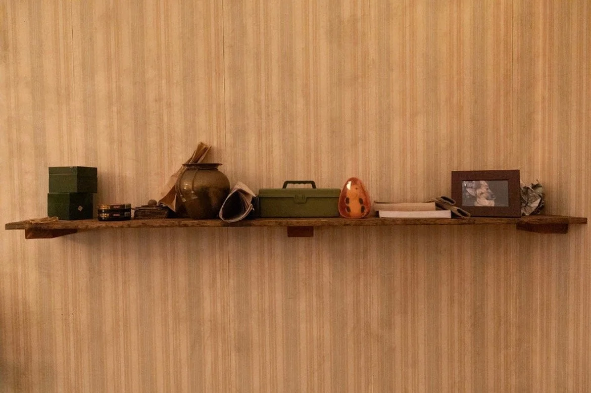 In the kitchen, dishes are piled up. A shadow of the fire escape stairs is cast on the wall by the setting sun, depicting the end of the work day, moments before Frank returns from work.